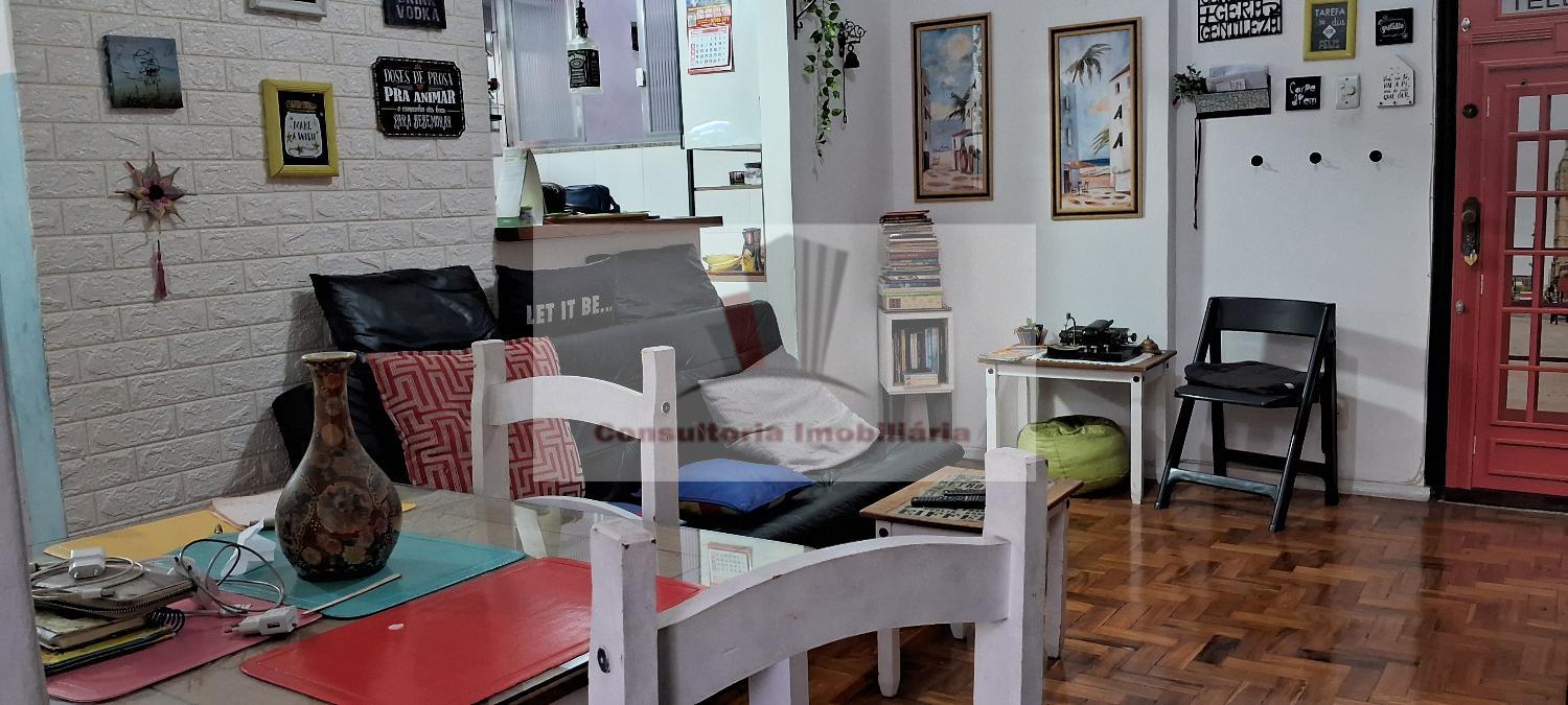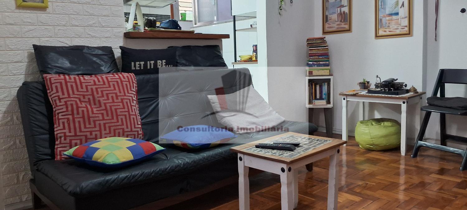 Ótimo apartamento reformado composto por sala com cozinha americana (armários planejados), 2 quartos com armários, banheiro social com box blindex, área de serviço. Ambientes claros e arejados. Estão incluídos os móveis e eletrodomésticos conforme consta nas fotos.